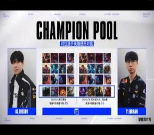 体育资讯10月14日称 今日S15世界赛入围赛iG对阵T1的比赛即将开始,在赛前官方放出了双方上单英雄池对比,TheShy与Doran第三赛段均使用了十六名英雄,其中只有四名英雄不相同。