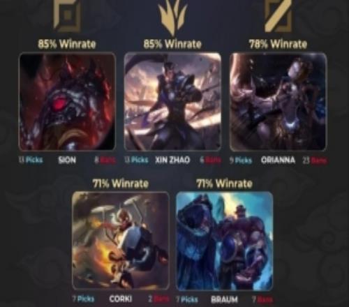 体育资讯10月22日称 外媒统计S15全球总决赛至今为止各位置胜率最高英雄,具体如下: