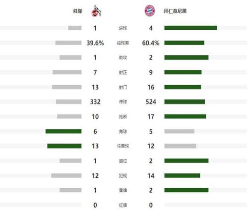 第64分钟拜仁左侧角球开出,凯恩前点头球一蹭,再次攻破了科隆的球门,帮助拜仁将领先的优势扩大到了3-1,彻底终结了胜负的悬念,新赛季凯恩在14场比赛中,已经为南大王创造了25粒球(22粒进球和3次助攻),第72分钟奥利塞锦上添花,将全场比分定格为了4-1。