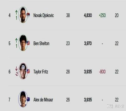 尽管弗里茨和辛纳都相继赢球,但是两人在本周一都失去了自己的头衔。弗里茨因为被扣掉了去年亚军的800个积分,世界排名下滑两位,被同胞谢尔顿超越,由美国一哥变成了二哥。