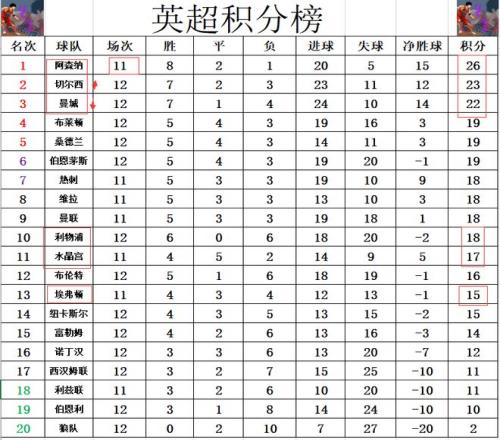 积分榜方面,利物浦的笑话还在继续,今天又输球开始连败,近7轮输了6场的他们本轮很可能就再上半区看不到他们了。利物浦继续沉沦,曼城今天也输了球,这恐怕是阿森纳这些年最好的夺冠机会了,他们先战少赛一场领先曼城4分,多利物浦8分。不过切尔西倒是追的很紧,他们超过曼城1分升至第2,落后阿森纳3分。