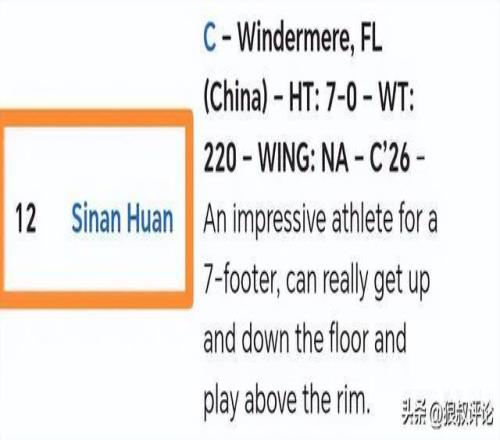 此前,美国选秀媒体NBA Draft Room的最新预测显示,郇斯楠有望在2028年NBA选秀大会首轮第12顺位被选中。球探报告指出,他身材高大,运动能力出色,篮板争抢是其明显优势,同时在球场上的领袖气质和对球权的掌控意愿正在提升。