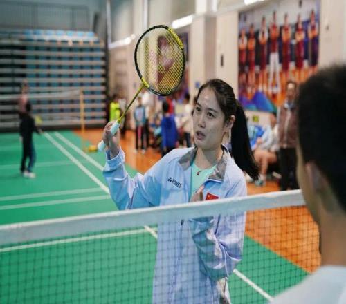 冠军体育课在羽毛球馆展开。“郑老师好。”随着校羽毛球队队员们的问好,郑老师带领大家进行热身,随后拿起球拍为队员们进行示范,“不要害怕失误,把动作做完整。”在简单的讲解过后,郑雨与高二学生刘思辰搭档,进行了一场混双表演赛。“郑老师的出球更隐蔽,发力也更集中,还有很多细节值得我学习。”刘思辰为搭档郑雨老师竖起了大拇指。高一年级学生刘浩然认为,与郑雨老师同台打球自己受益良多:“打球要多动脑,打完一个球要想对方会怎样回,就像郑雨老师一样,去预判对方的球路,这样才能更好得去抓住机会。”谈及与郑雨进行混双对决的感悟,刘浩然坚定地说:“球不落地,永不放弃。”