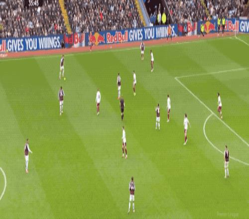 第65分钟,特罗萨德传球被抢断,维拉的反击速度相当快,沃特金斯面对多人包夹起脚射门,拉亚再次做出关键扑救。