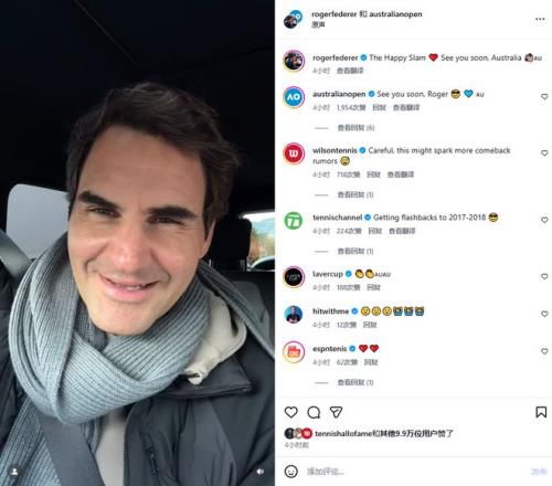 北京时间12月12日,费德勒在社媒发文,宣布将在2026澳网重返墨尔本。