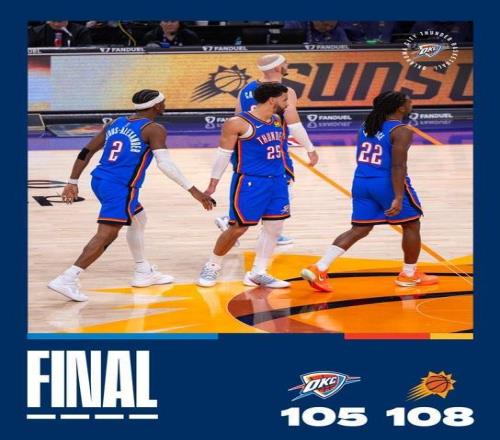 北京时间今日,在NBA常规赛中,卫冕冠军俄克拉荷马雷霆队在客场以105-108不敌菲尼克斯太阳队,遭遇本赛季的第六场失利。