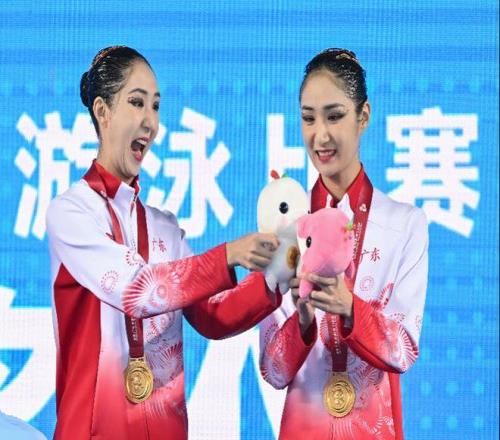 作为奥运冠军,王柳懿/王芊懿是四战全运会才第一次拿下花游双人项目金牌,能和亲姐妹在主场登顶,也使得二人的职业生涯格外圆满。“之前大大小小的比赛都参加过,我们的职业生涯里还没有拿过全运会的这块金牌。能在家门口主场作战最后夺金,对我们来说是非常圆满的一个结果。” 王芊懿笑言。