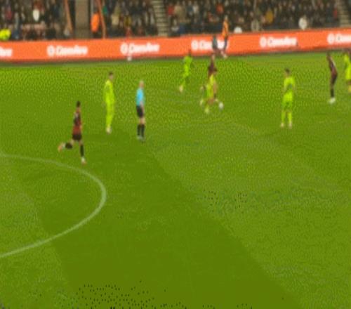 这一次的防守中,塞梅尼奥就是从左边锋位置回撤,当对手打穿了伯恩茅斯的右路侧翼,虽然最终横传是在中路被解围掉了,不过后点位置塞梅尼奥已经到位,跟住了无球前插的攻击手。