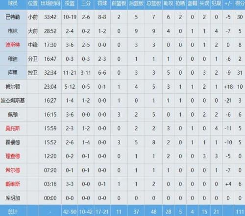 勇士数据如下: