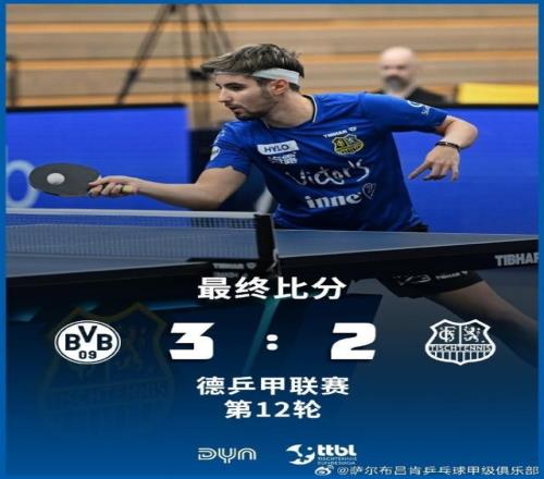 乒乓球德甲:萨尔布吕肯2比3客负多特蒙德