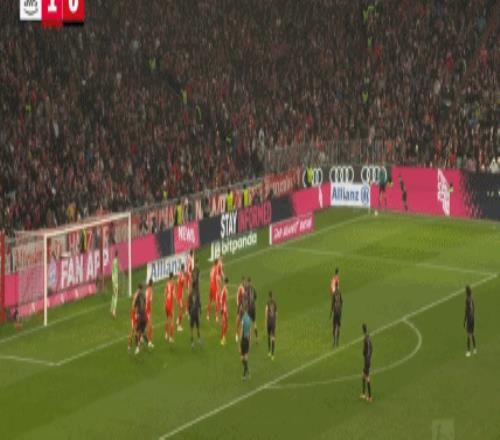 第81分钟,流畅配合,吉安努利斯倒三角,马森戈破门,奥格斯堡2-1拜仁