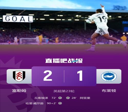 在比赛的最后阶段,富勒姆获得了一个关键的任意球机会,哈里·威尔逊毫不犹豫地直接开球,令富勒姆在补时阶段以2-1的最终比分取得胜利。这场胜利不仅让富勒姆积累到了34分,稳居联赛第七的位置,也让球迷们感受到了久违的喜悦。