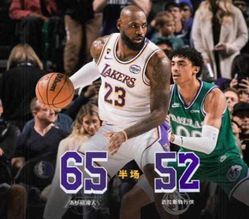 第二节比赛,虽然湖人这边有着中锋艾顿贡献的“名场面”,在篮下连续抢到4个前场篮板,却离谱地连续5次放篮不中,但是独行侠整体进攻受阻,湖人趁机将分差拉开,半场65比52领先13分。
