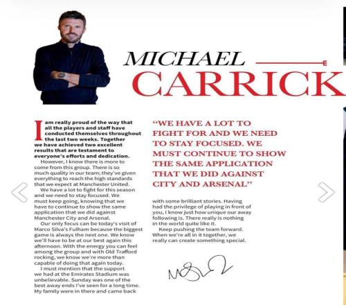 卡里克表示:「这不会影响球队,我非常尊重球迷,他们非常了不起,多年来一直支持球队,尽管期间经历了许多起伏。我不会因此烦恼,球员们当然也不会。在球场内,我们可以感受到的支持力度一直非常不可思议。在我看过的比赛中,球迷的支持都处于最高水平,我相信这种情况会继续。」