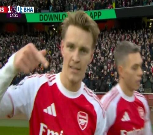 英超第18轮,阿森纳主场对阵布莱顿,上半场厄德高远射破门,斩获个人本赛季在阿森纳的首粒进球。此役主场对阵布莱顿,比赛第14分钟,厄德高在禁区外接萨卡传球后远射破门,帮助阿森纳取