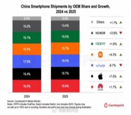 遥遥领先25年中国智能手机市占华为第一苹果翻盘失败