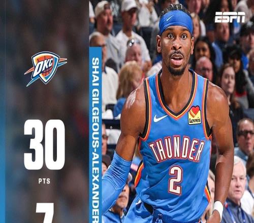 北京时间今日,在NBA常规赛中,俄克拉荷马雷霆队在主场以137-106大胜新奥尔良鹈鹕队,取得了开季七连胜。本场比赛,雷霆队当家球星亚历山大持续稳定发挥,他全场14投8中得到了30分2篮