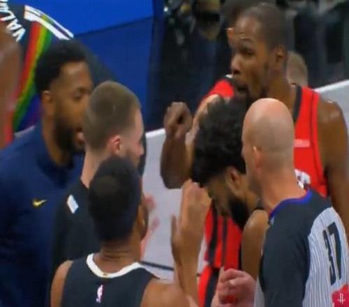 北京时间12月21日,NBA常规赛,掘金主场不敌火箭。在比赛第三节末端,杜兰特与其篮网时期队友布鲁斯-布朗互喷垃圾话险些酿成冲突,两人在各自队友与裁判的劝说下没有将事态升级。赛