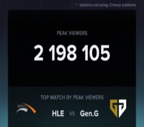 体育资讯10月28日称 据国外数据网站Esports Charts统计,GENvsHLE比赛的观赛人数达219万人(不包含国内平台)