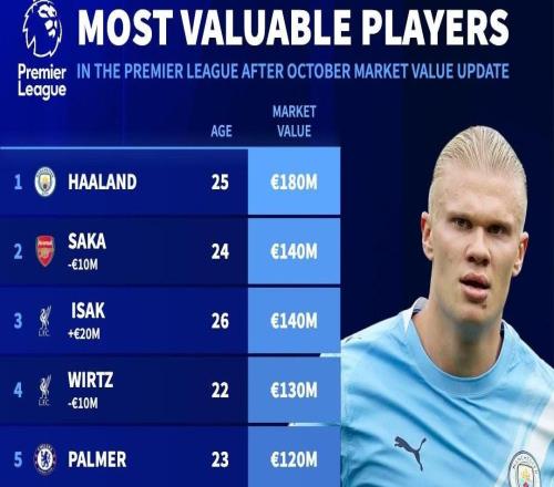 英超球员身价榜公布:哈兰德1.8亿断崖式领先,利物浦成最大赢家
